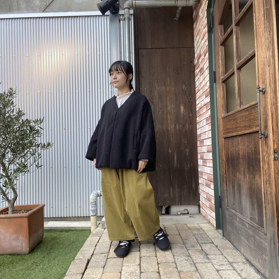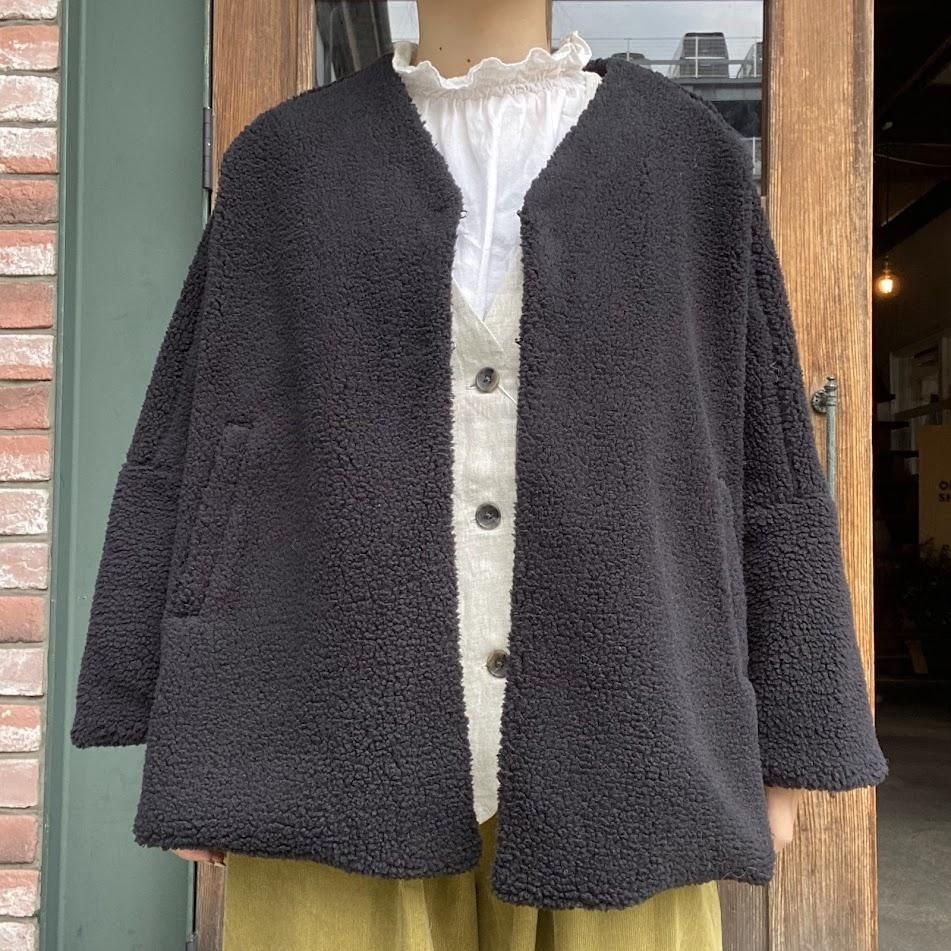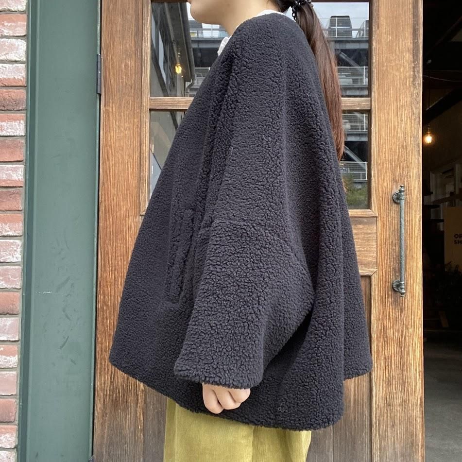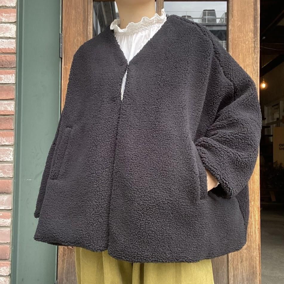 ボア生地の暖かさはもちろん、羽織のように着こなすこともできる利便性の高さも魅力的な、