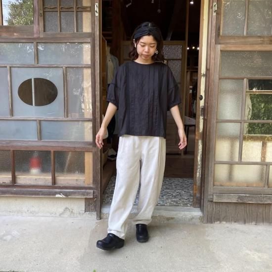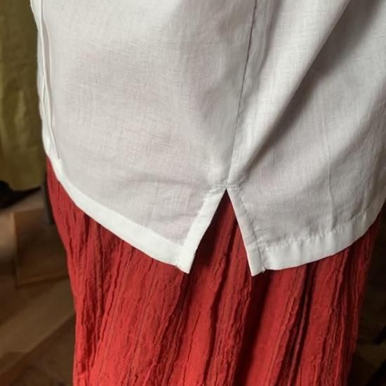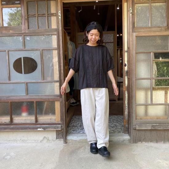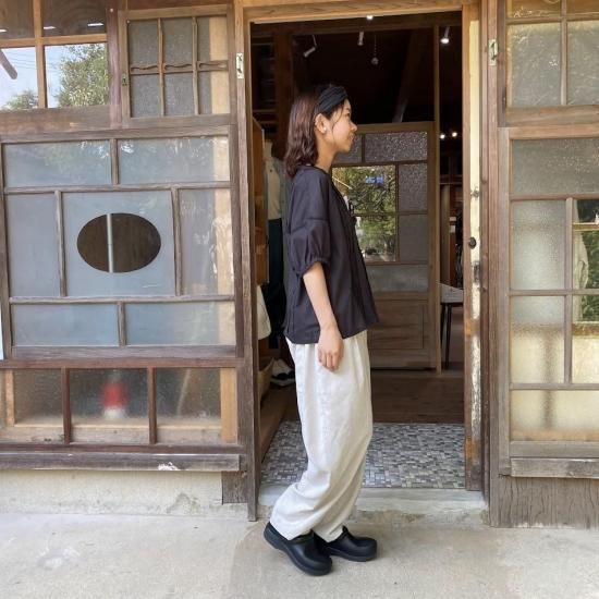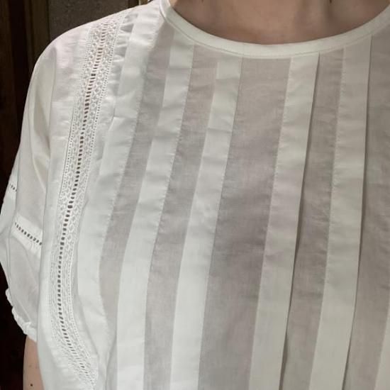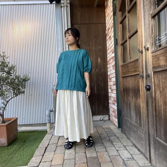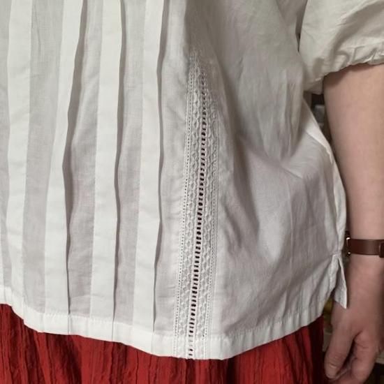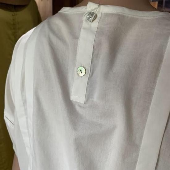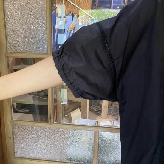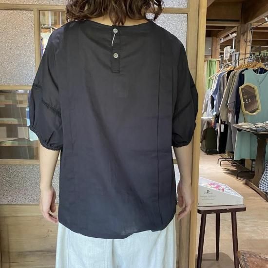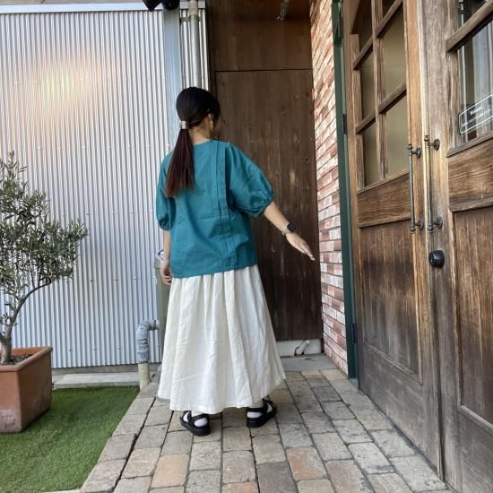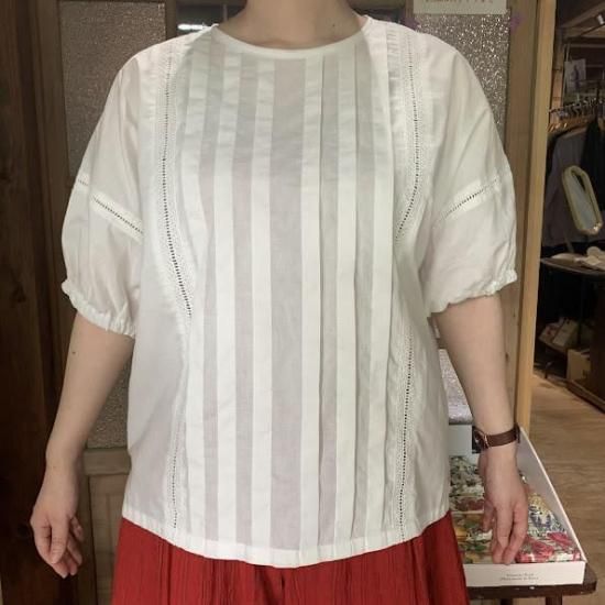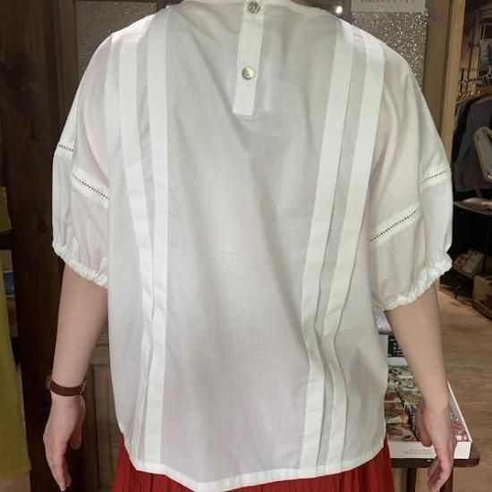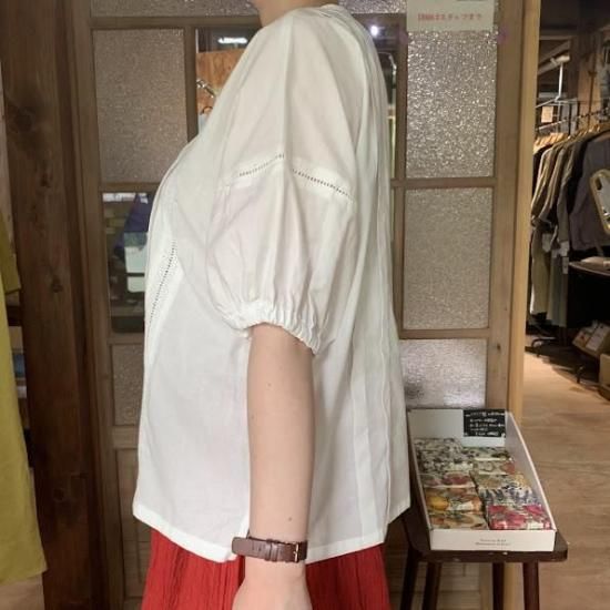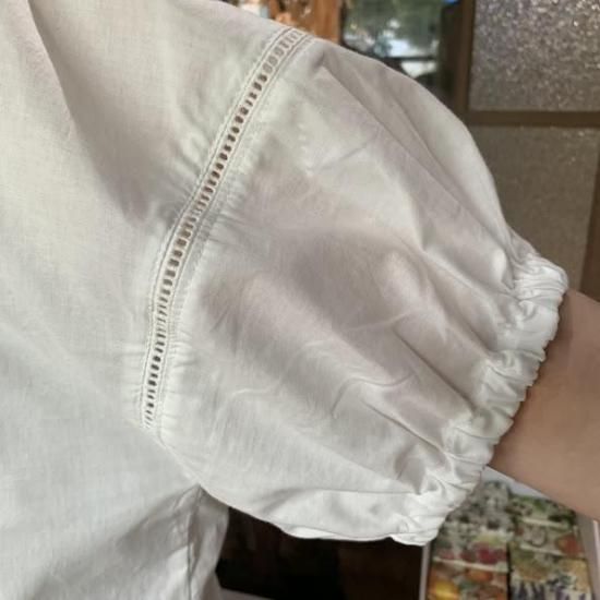 柔らかなコットンローン生地100%。お袖がゴムでゆったりと着ていただけます。刺繍柄がアクセントで、可愛らしいコーディネートがお好きな方にオススメです。スカートはもちろん、ジャンスカやキャミワンピースに合わせても可愛い◎