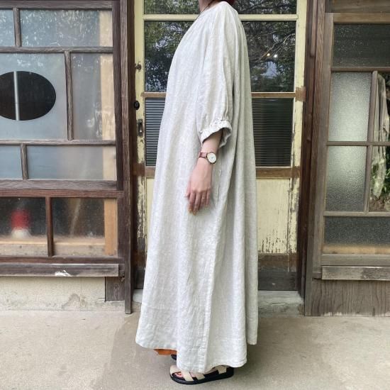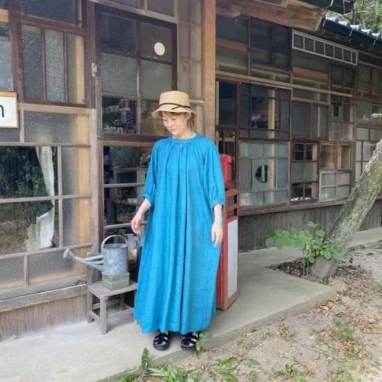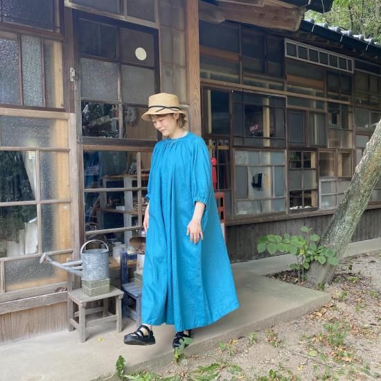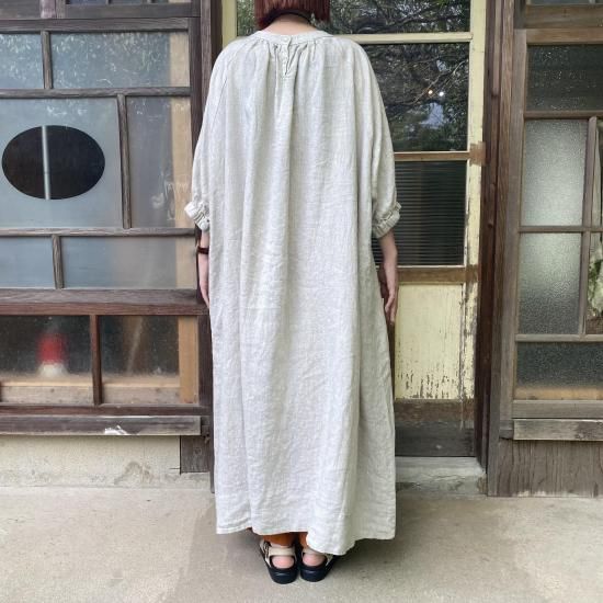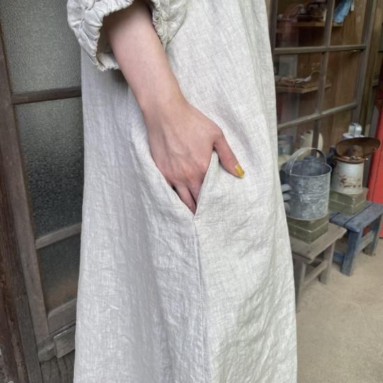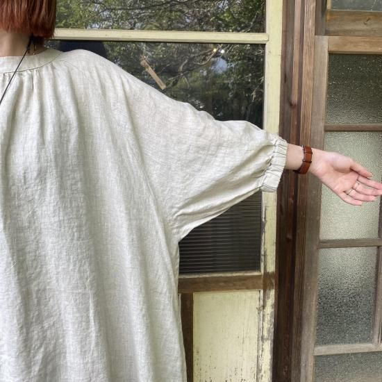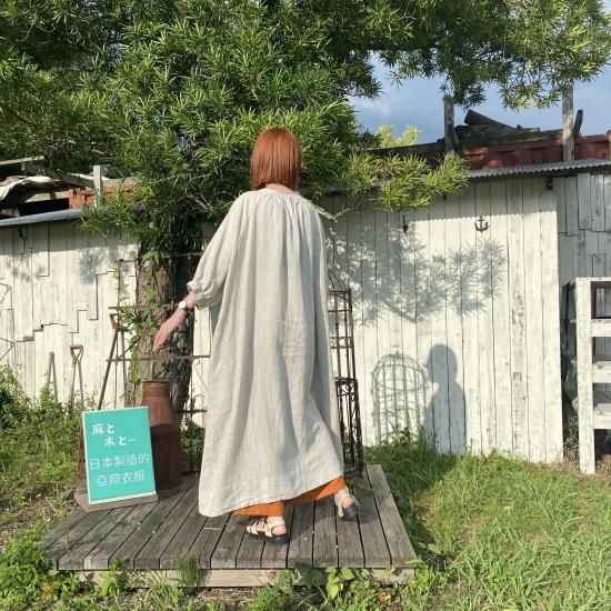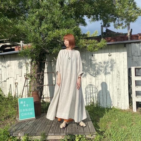 【08Mab】14番手リネン袖ゴム付きラグランスリーブワンピース