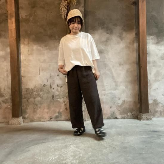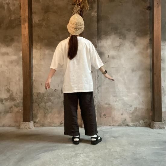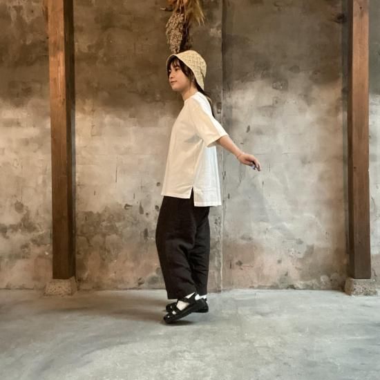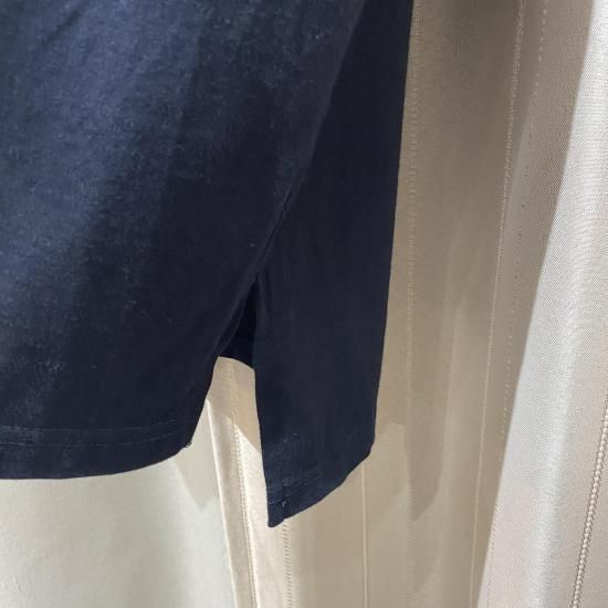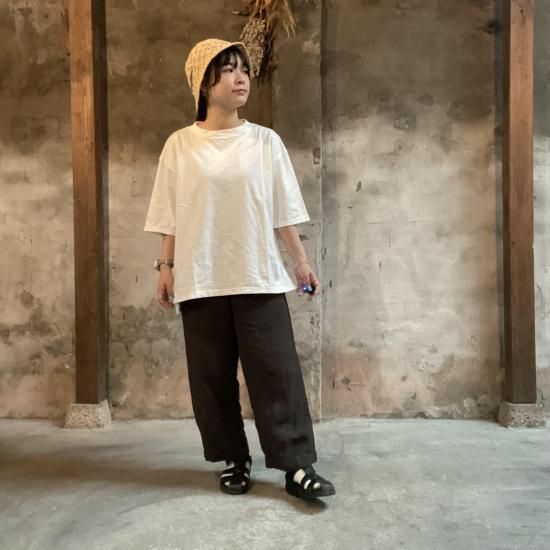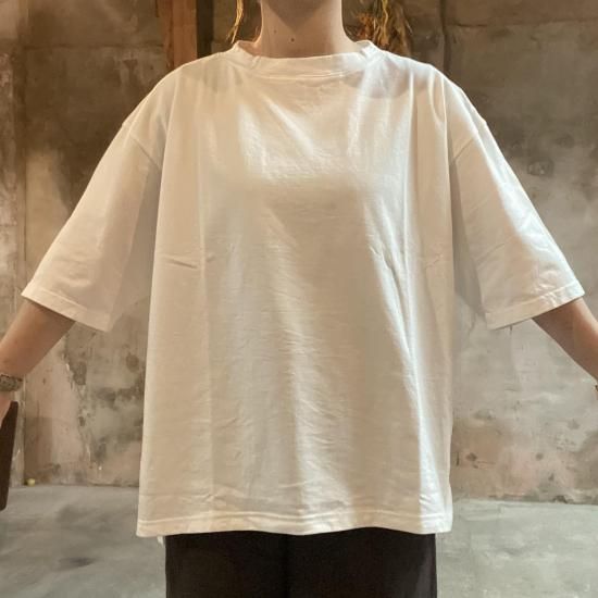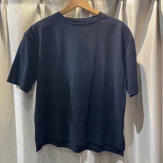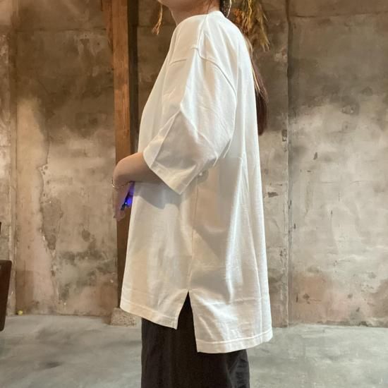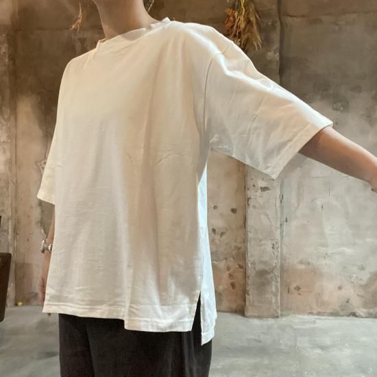 【アイテム説明】程よい厚みとしっかりとしたコシのある天竺素材を使用。すっきりとしていますが、ゆったりとしたボックスシルエットで大人Tシャツ。サイドにスリットが入っていて少し前後差があります。