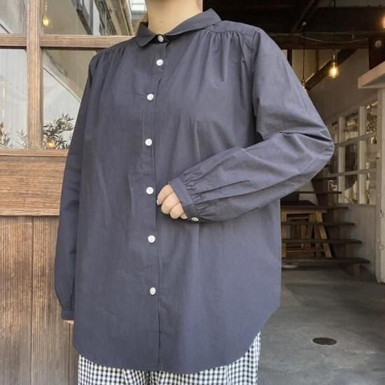 【商品詳細】生地の表面に洗いざらしのような自然なシワ感を施したワッシャー生地。程よいハリ感があります。前開きデザインで、キラリと光るシェルボタンを使用。後身後は切り替えギャザー。シンプルなシルエットですが、肩あたりにギャザーがとってあり女性らしい華やかな雰囲気に。