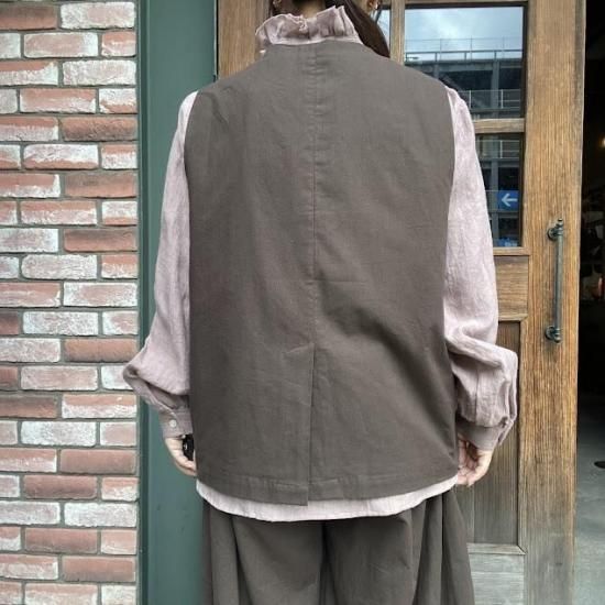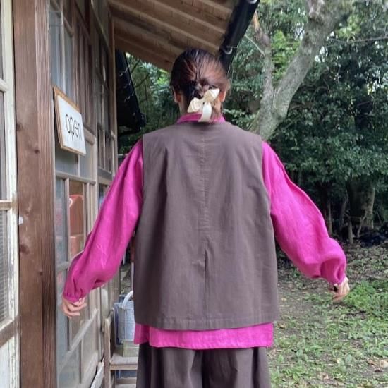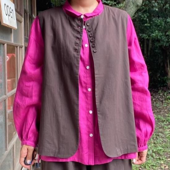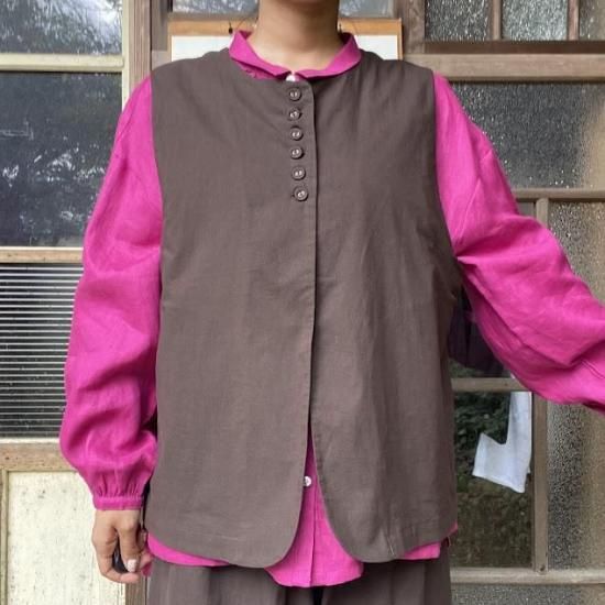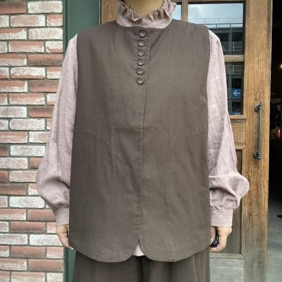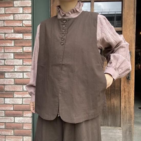 麻調コットン多ボタンベスト