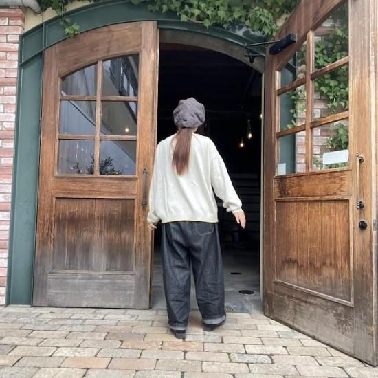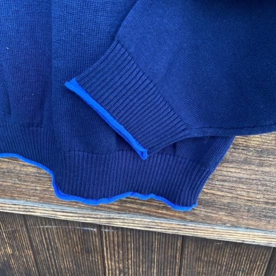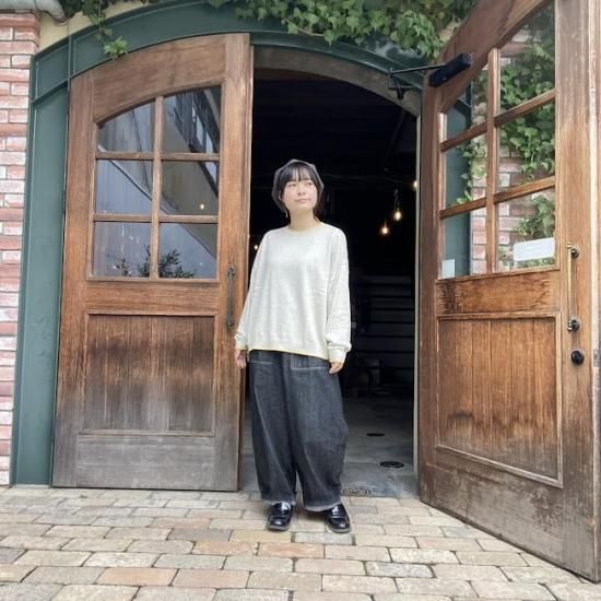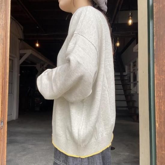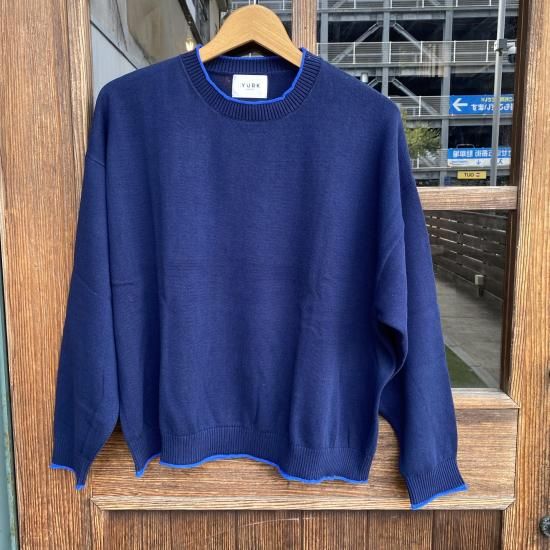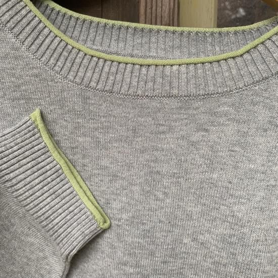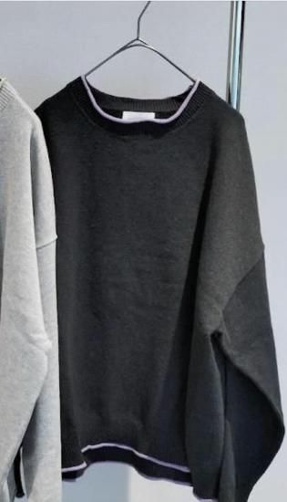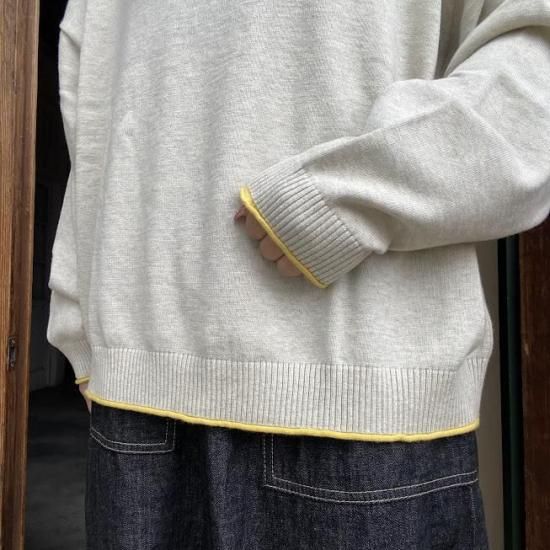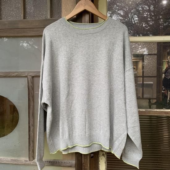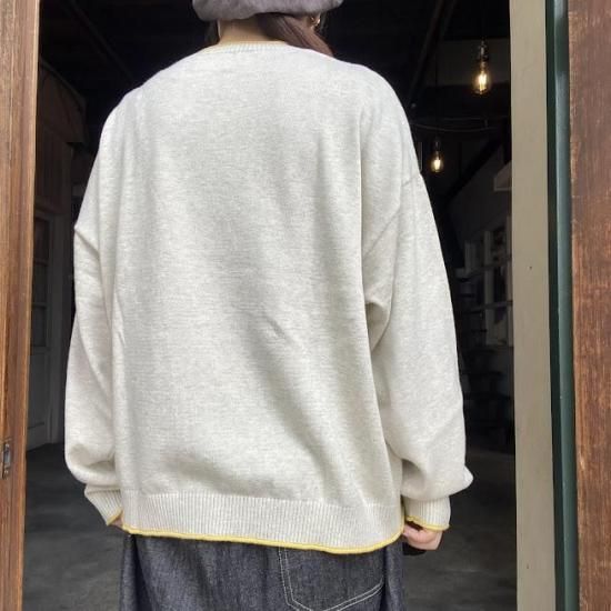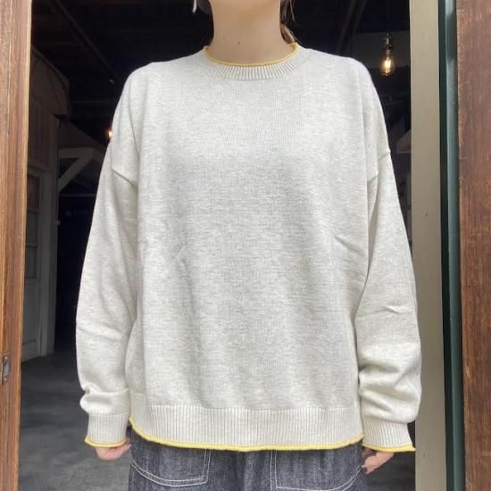 【商品詳細】柔らかく肌あたりの良い綿ニットが届きました。襟ぐりと袖口、裾がさりげないバイカラー仕様になっております。