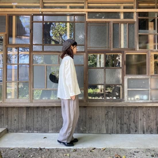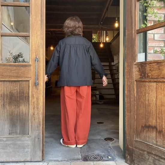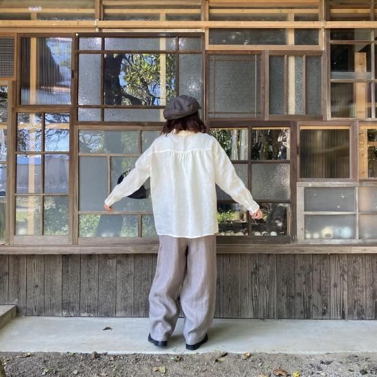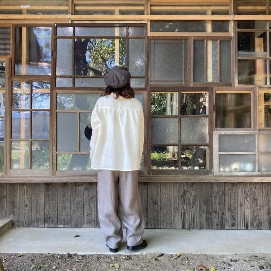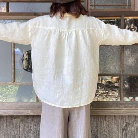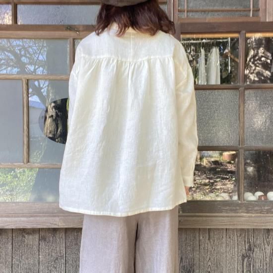 身幅もゆったりとしていて重ね着も可能です。後身後は、切り替えギャザーでほんのり可愛らしさを取り入れた1枚です。