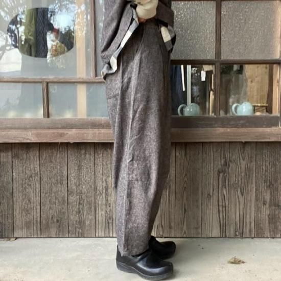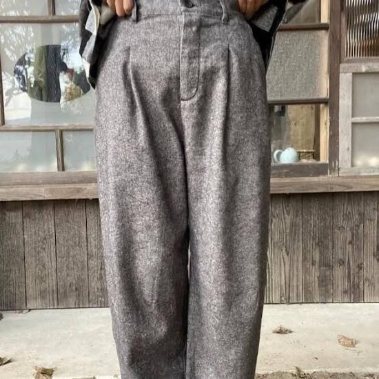 【アイテム説明】普段使いからオケージョンアイテムとしても着ていただけるコットンリネン生地のパンツになります。同素材のベストとセットアップも可能です。シルエットを拾わないゆったりとしたデザイン。