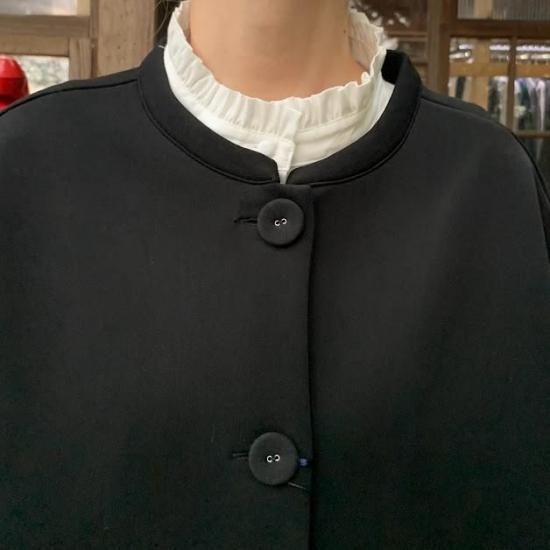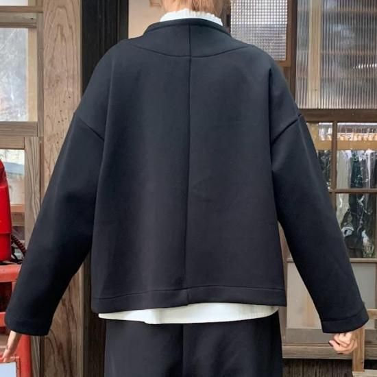優れた伸縮性のある生地で、お仕事や行事事にも大活躍のジャケット。同じ生地のパンツとセットアップ可。シワにもなりづらく、移動の際も安心です。シンプルなですが、大きめのボタンがポイントで、目をひくデザインとなっております。